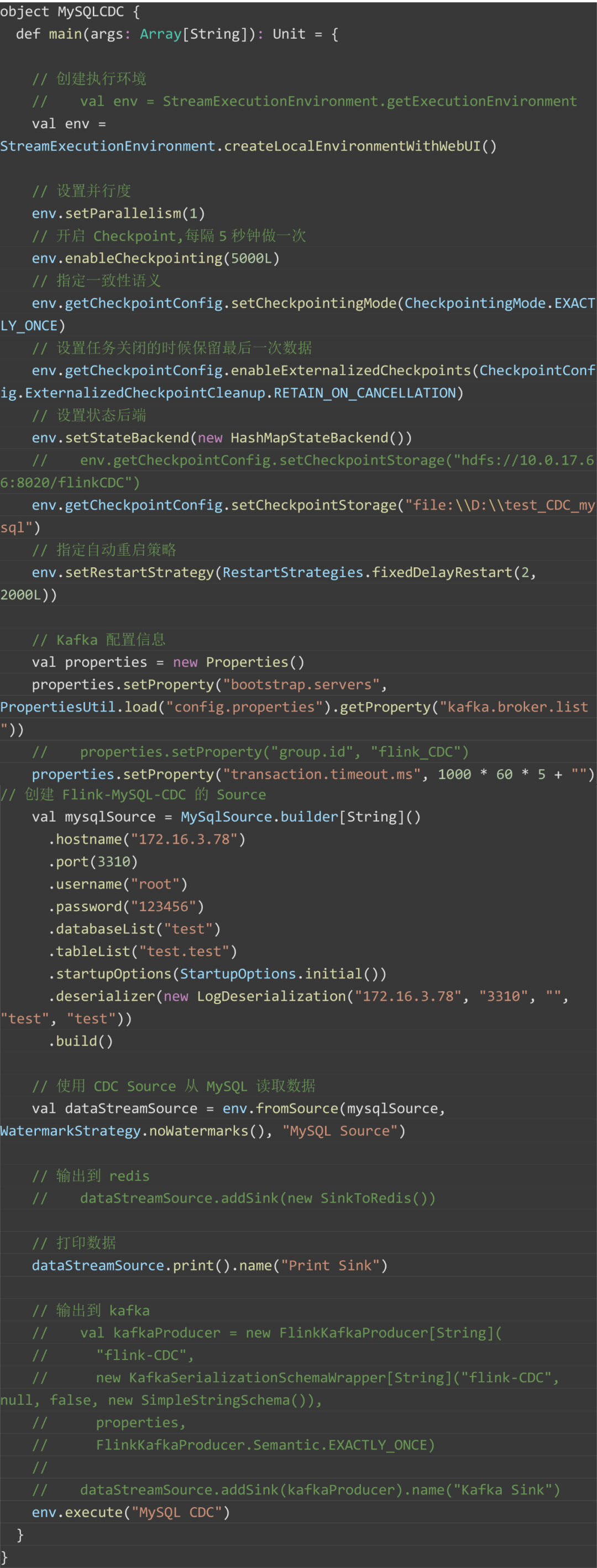 DataStream方式监听 MySQL 数据库实现: