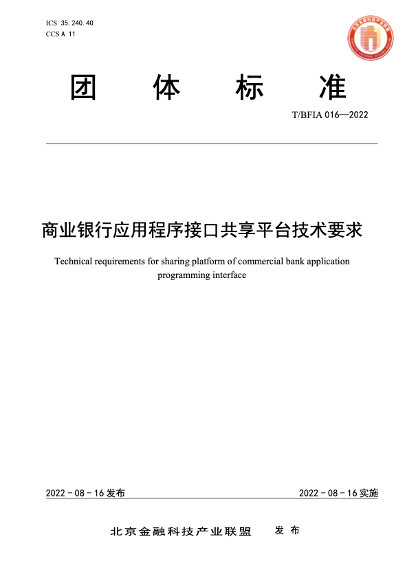 近日,经北京金融科技产业联盟第二届理事会第六次常务理事会审议通过,由神州信息主导编制的《商业银行应用程序接口共享平台技术要求》(T/BFIA 016—2022)正式获批发布。