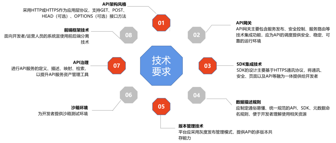 本标准对商业银行应用程序接口共享平台的逻辑结构、功能架构、技术要求和安全要求等几个方面进行了规范,引导金融服务机构建设充分、安全、合理的应用程序接口共享平台,规范主要内容如下: